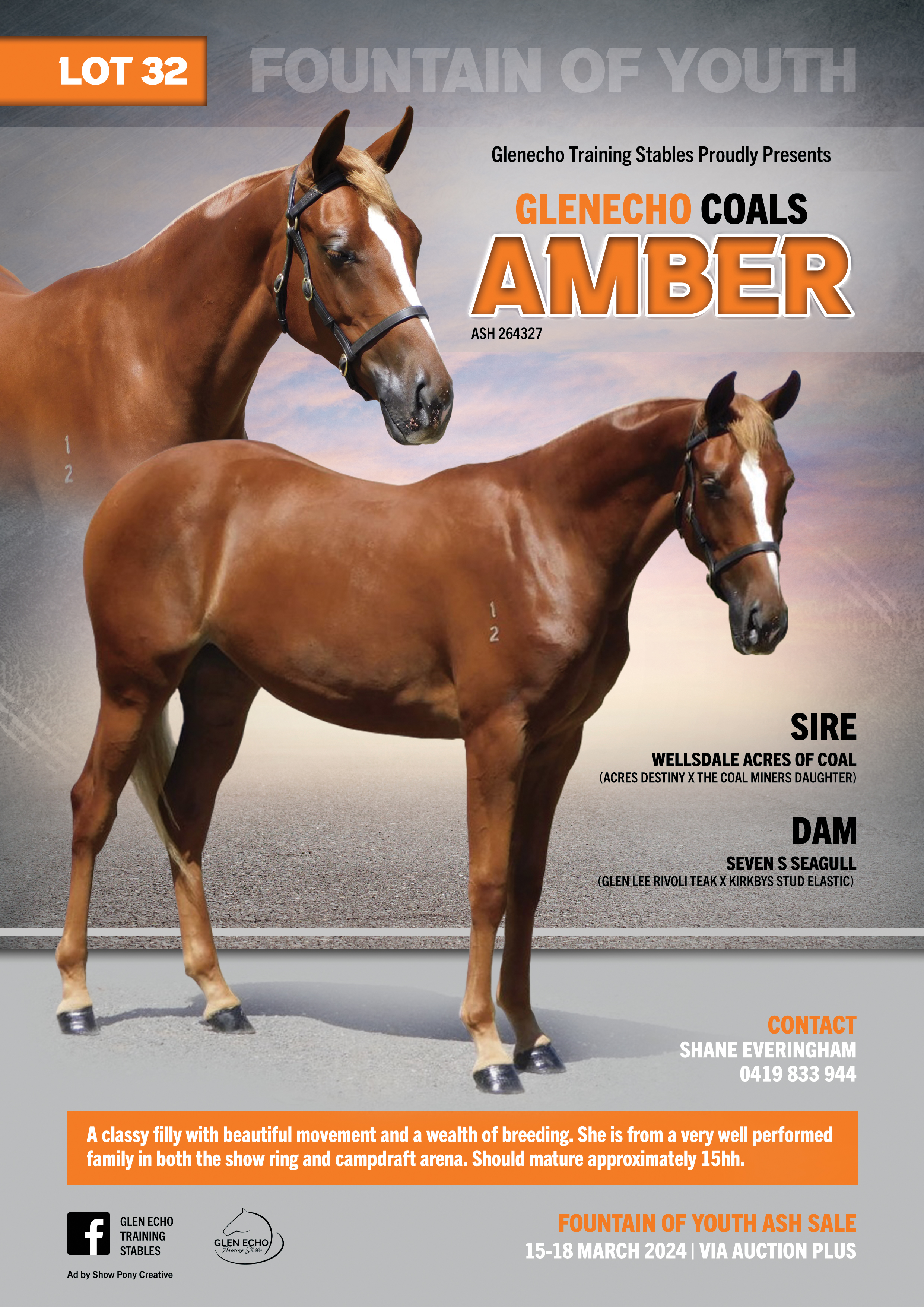 Stunning filly with exceptional bloodlines on both sides this filly is one for future show and competition.