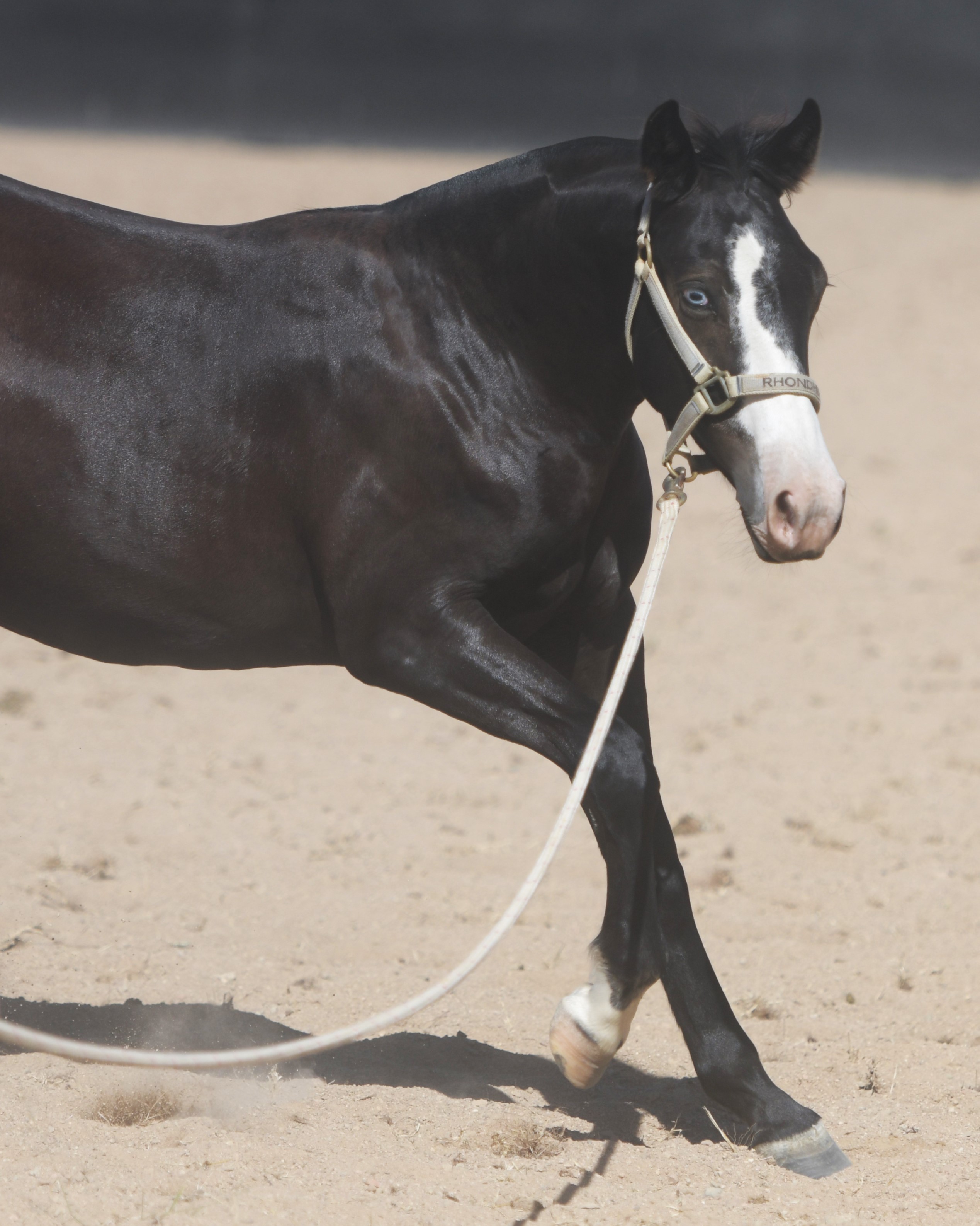 Rhondhu Dark Blue Moon (BadBoonaRising*) ET 2023 Black colt, blue eye.