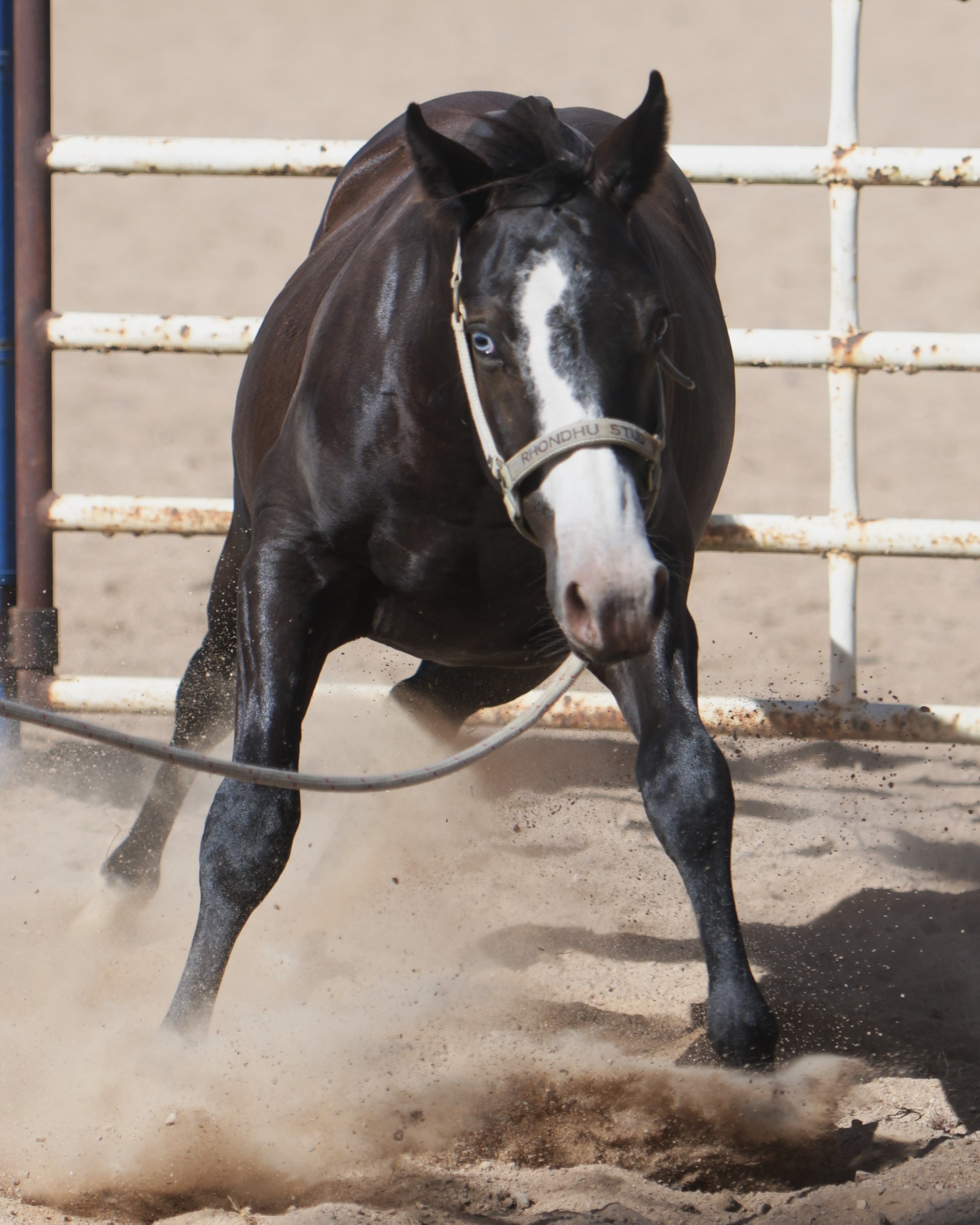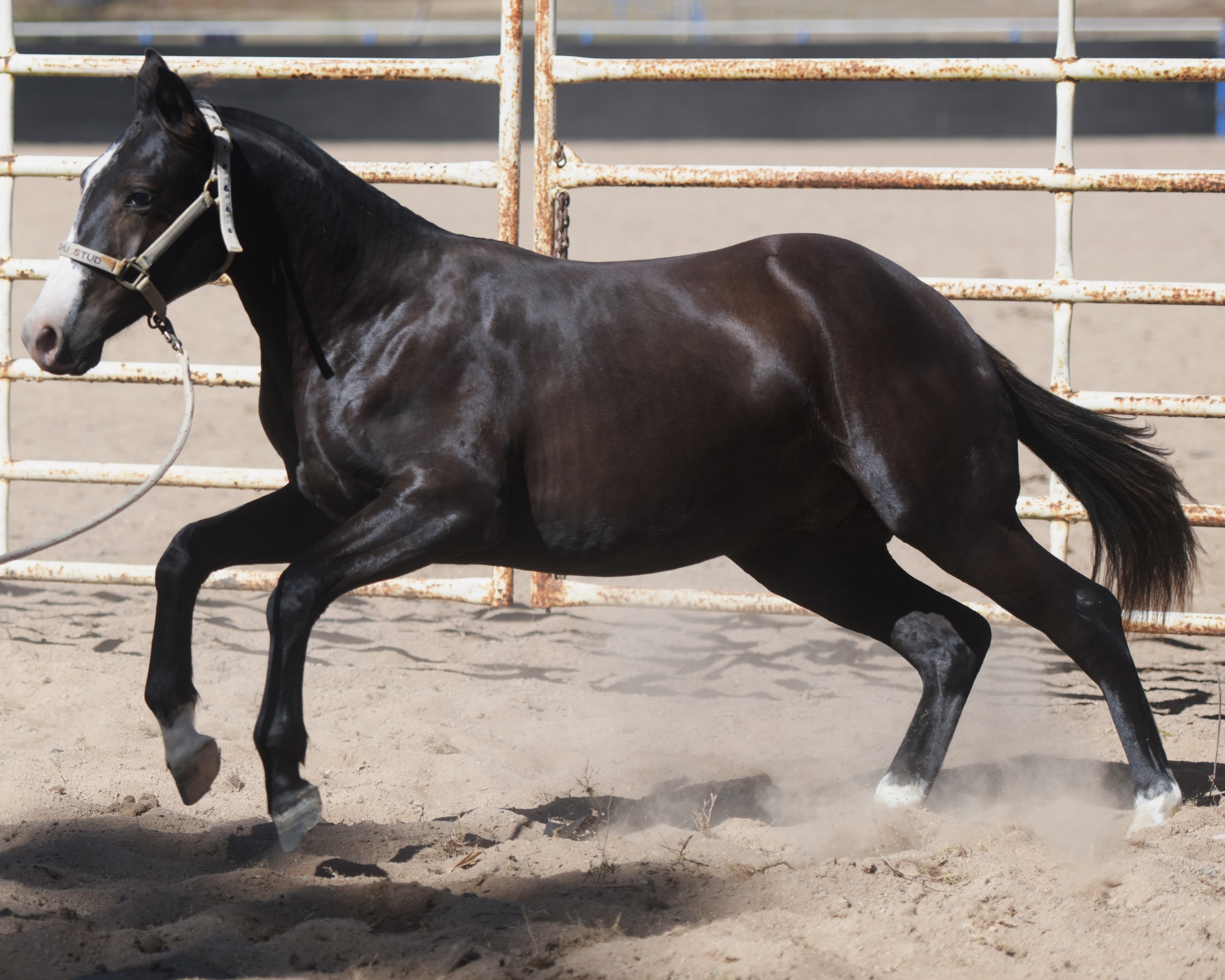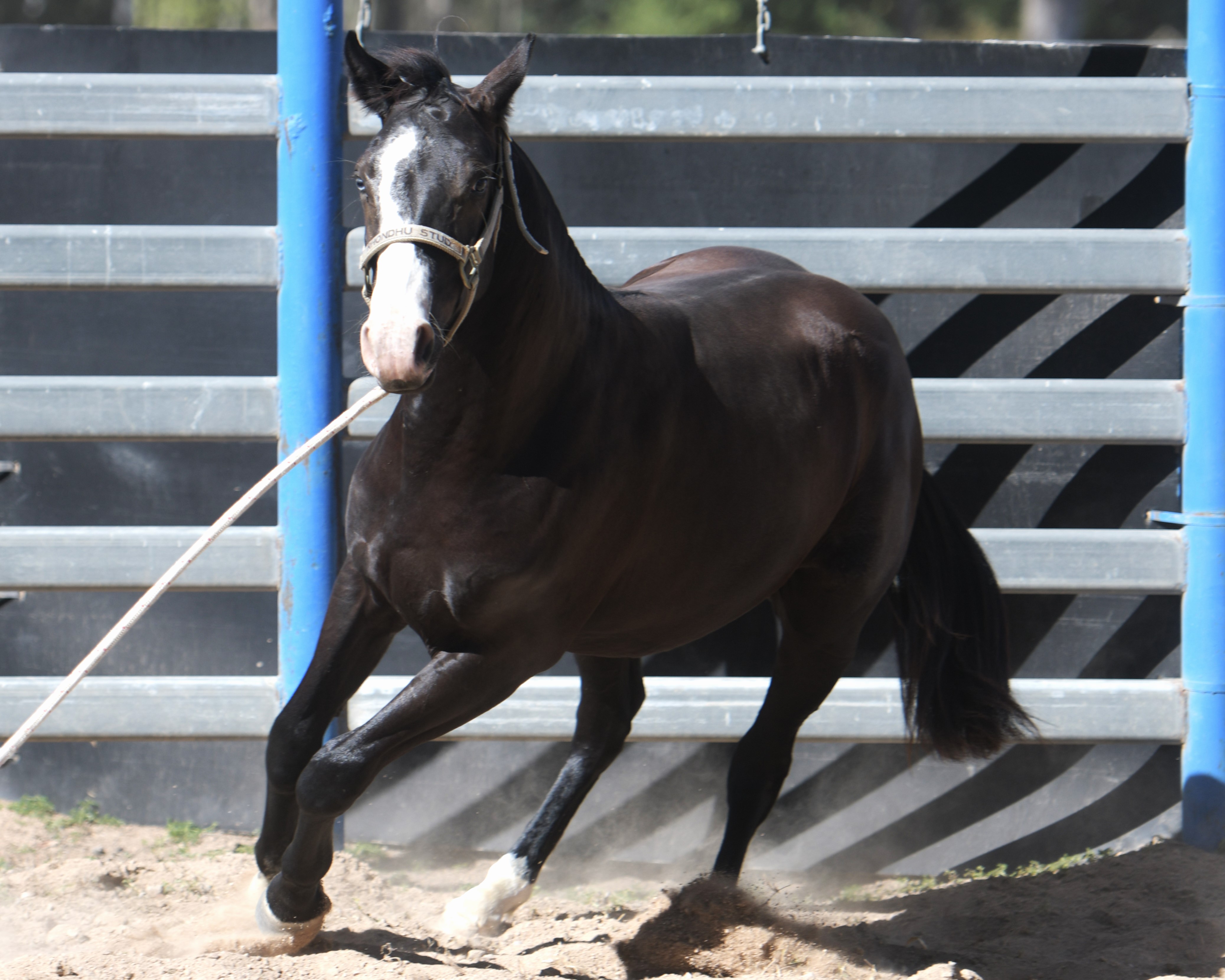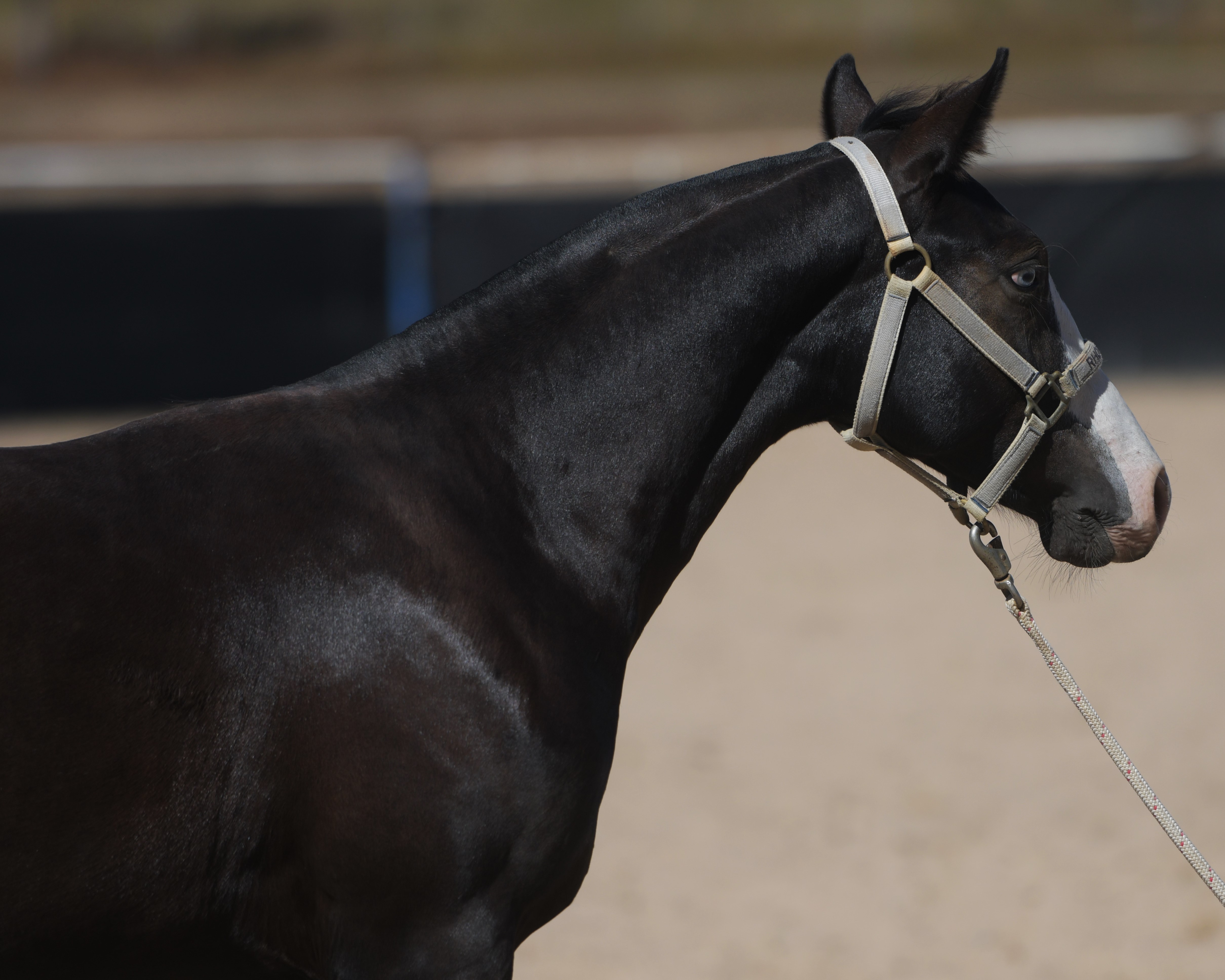 Superlative colt, right here, right now, ready to fire! Everything is right. Embryo transfer BBR live on the ground. Black. One blue eye. Nicely marked. Perfect legs. Perfect feet. Will grow out. Athletic. Savvy. Lots of caution. Amazing pedigree. Top shelf mare line. USA sired that it is rumoured the service fee will be at $18,000 within 2 years, if AUS even gets semen after next season.