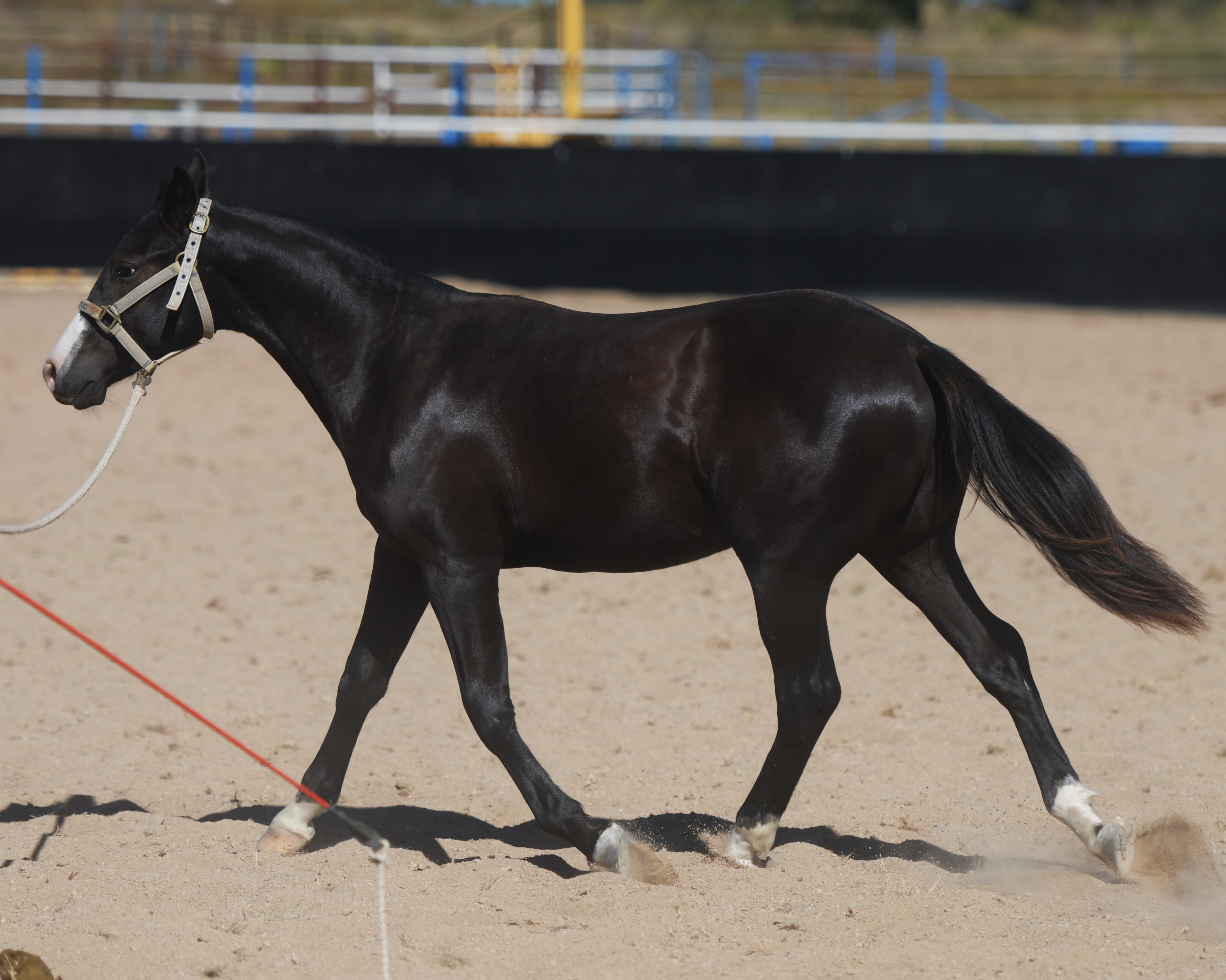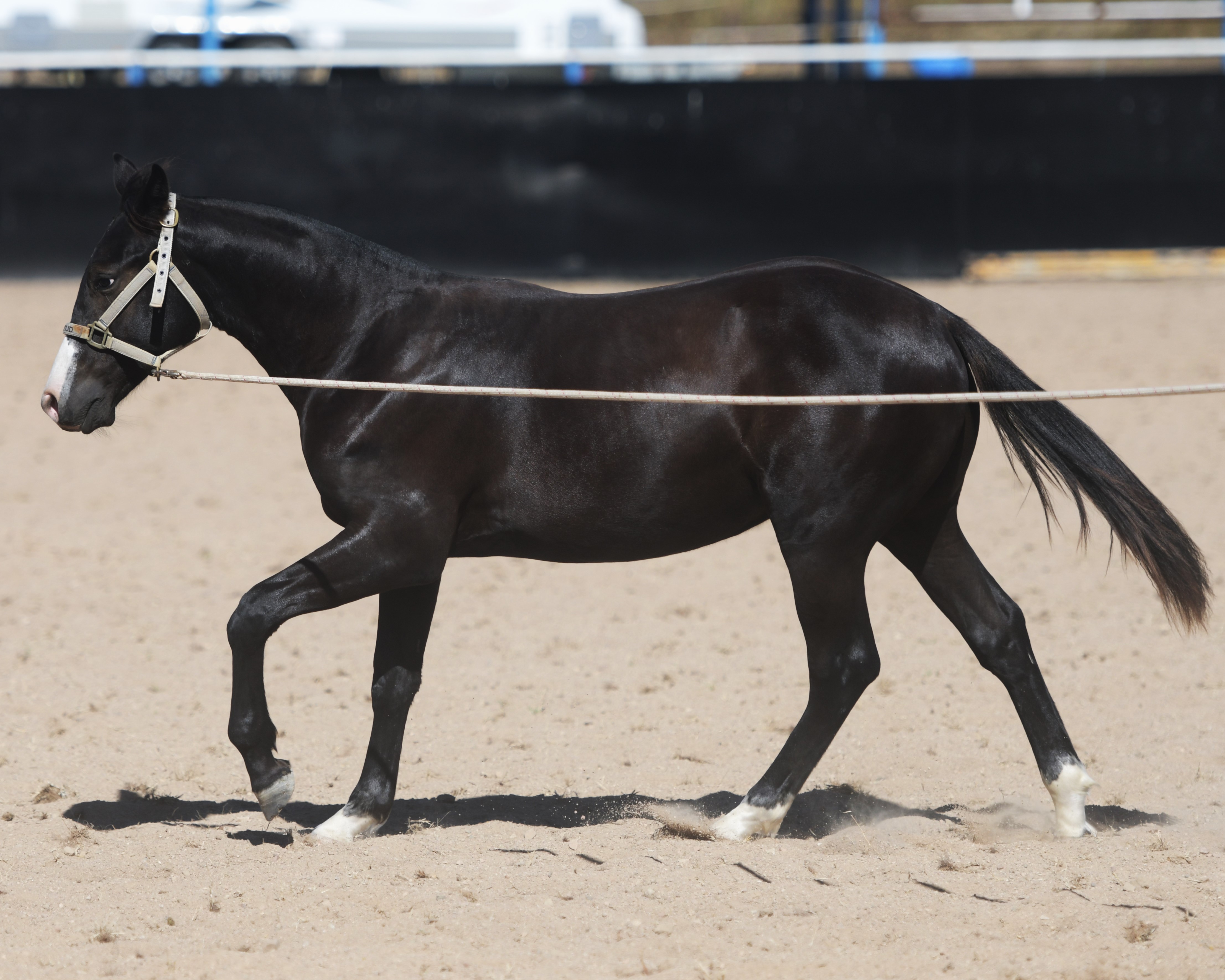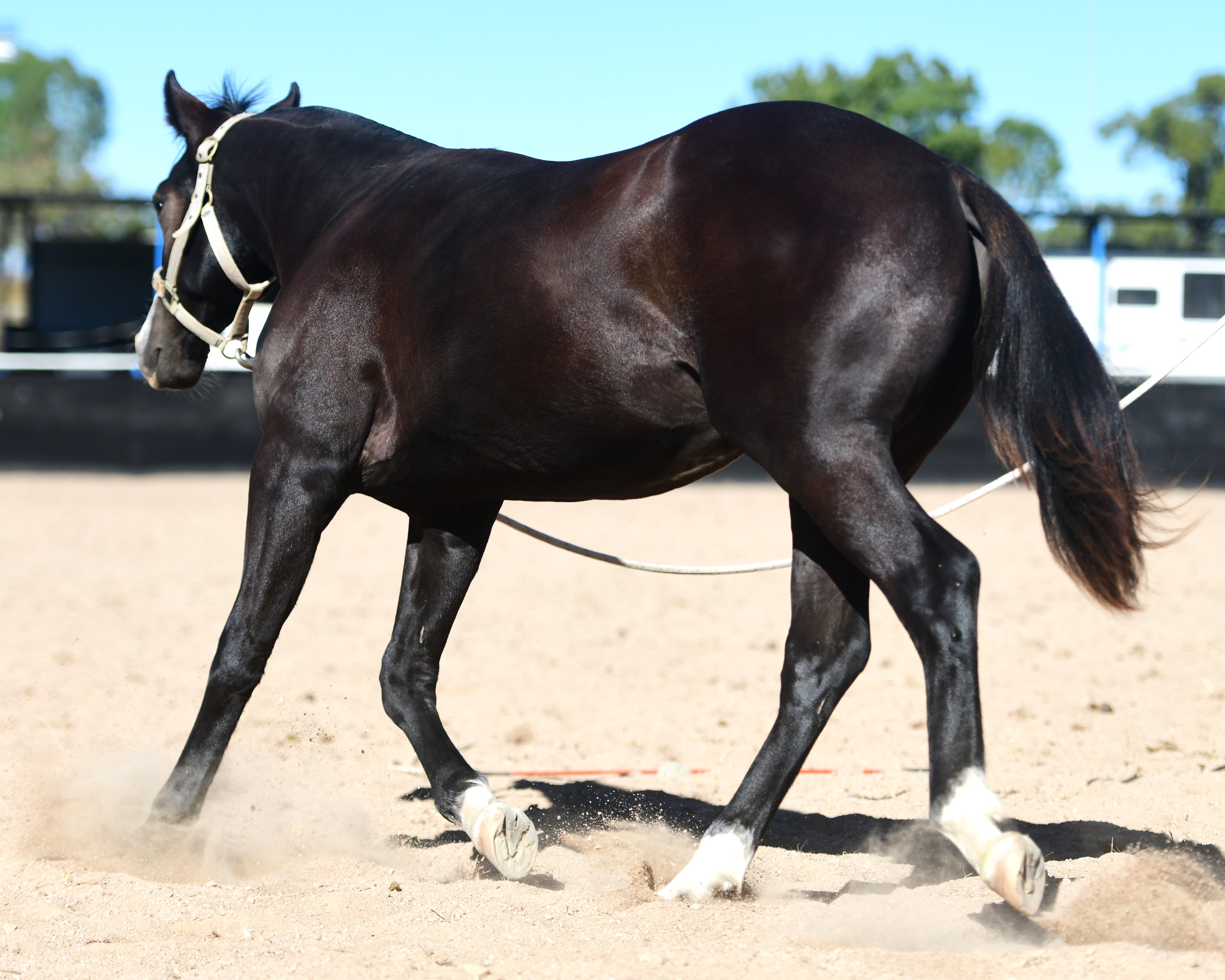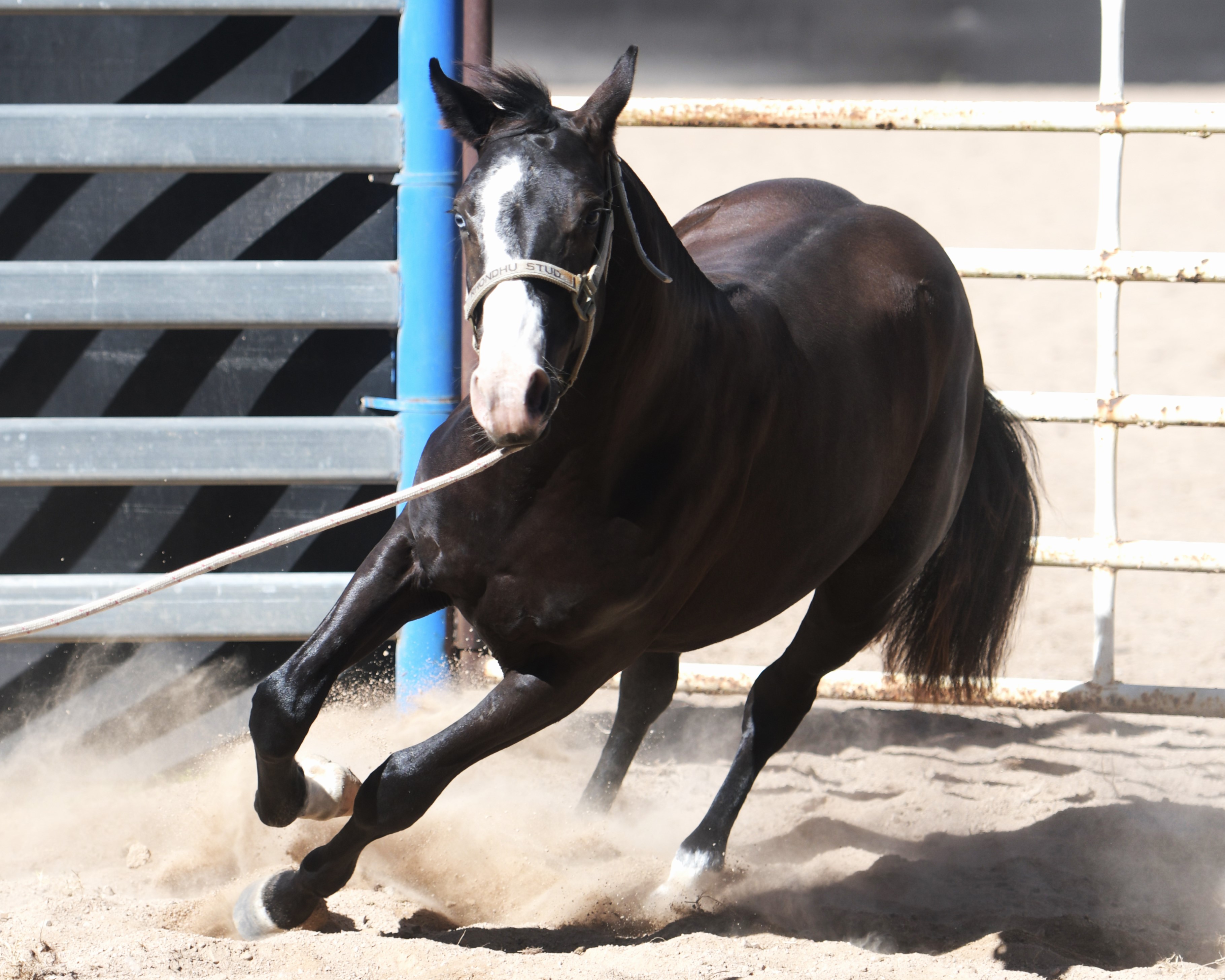 Superlative colt, right here, right now, ready to fire! Everything is right. Embryo transfer BBR live on the ground. Black. One blue eye. Nicely marked. Perfect legs. Perfect feet. Will grow out. Athletic. Savvy. Lots of caution. Amazing pedigree. Top shelf mare line. USA sired that it is rumoured the service fee will be at $18,000 within 2 years, if AUS even gets semen after next season.