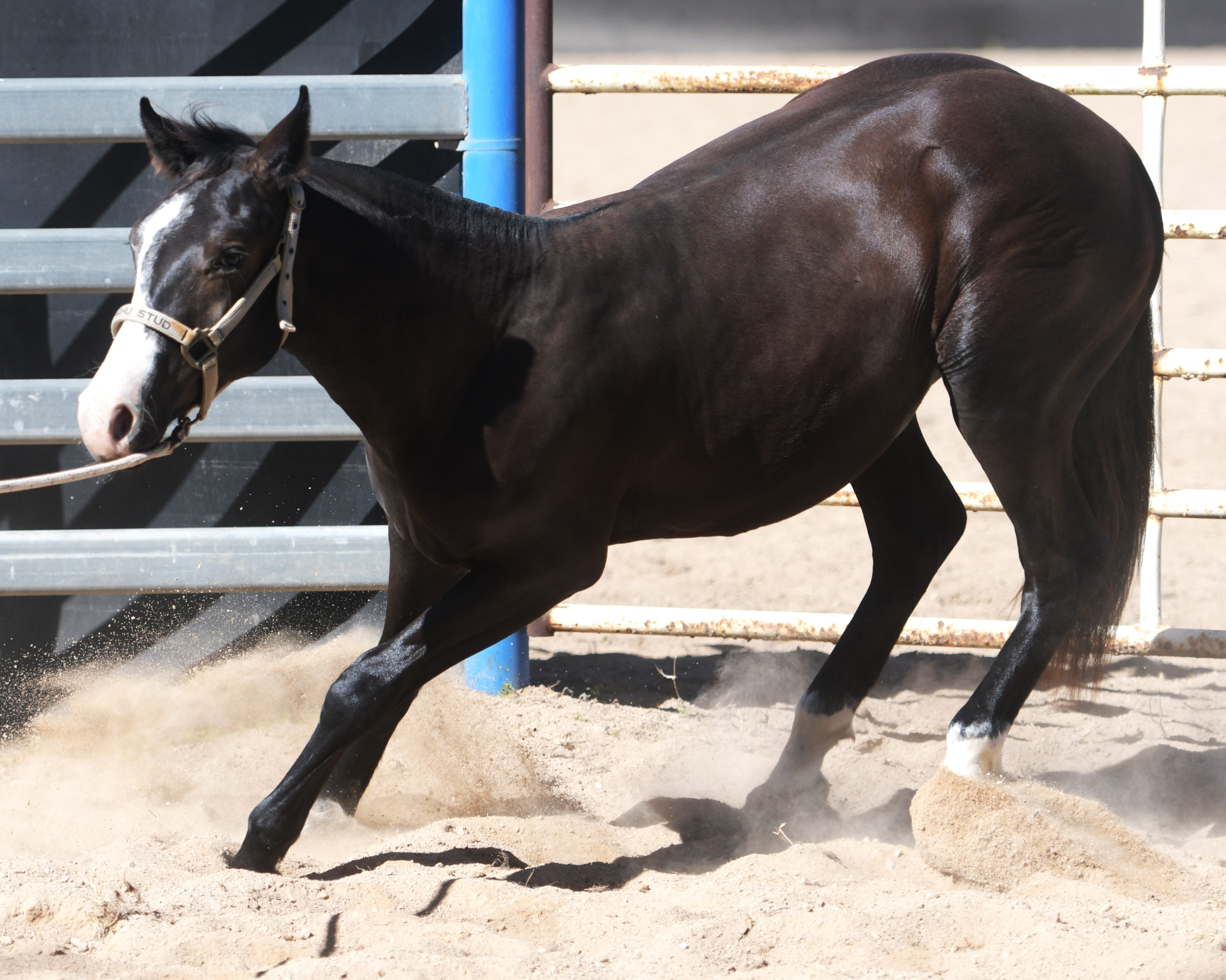 This colt is special. You do NOT get colts like this every day. He has the wow factor, the presence, the clolour and just the right amount of bling. He has a nice mind. He is quiet but very aware of his surroundings. He is very athletic, and uses all 4 of his legs well in movement and travel, almost elastic some days! He will be very expressionable on a cow. He watches, he learns. He is simply outstanding.