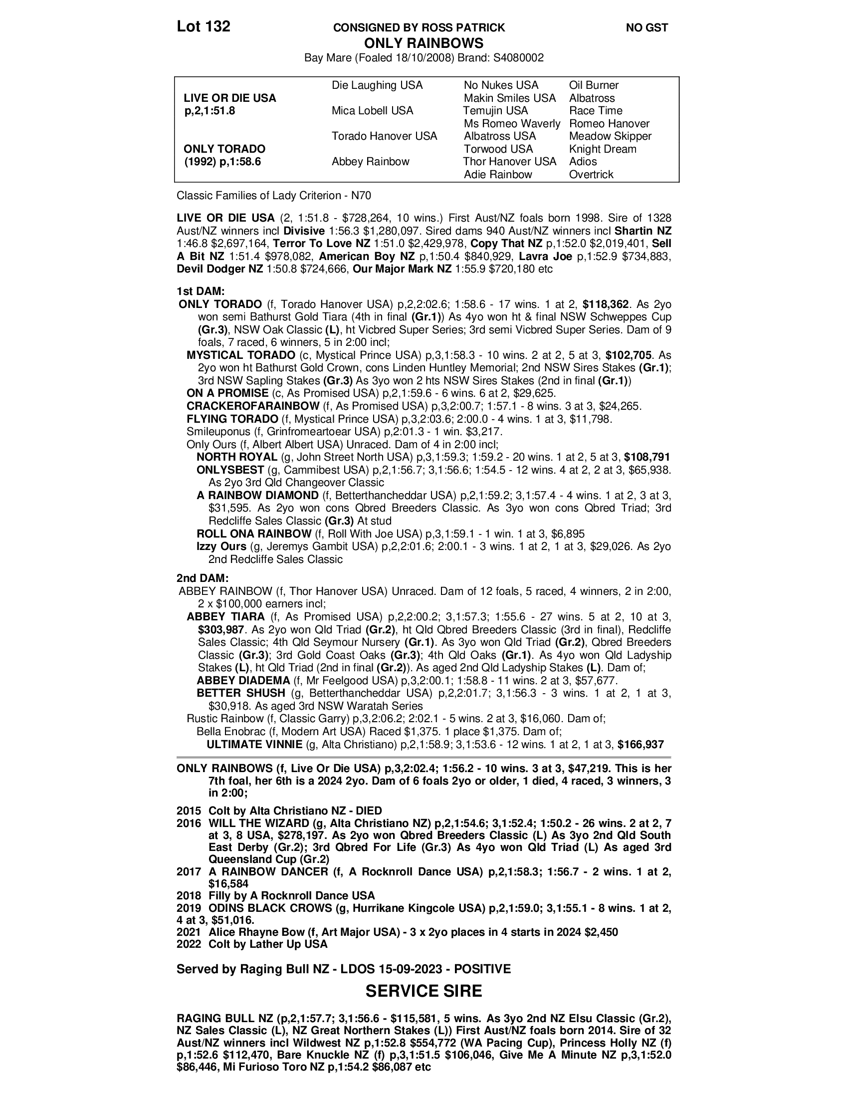 ODENS BLACK CROW (2019) WINNINGS $51,016 - SIRE - HURRICANE KINGCOLE US