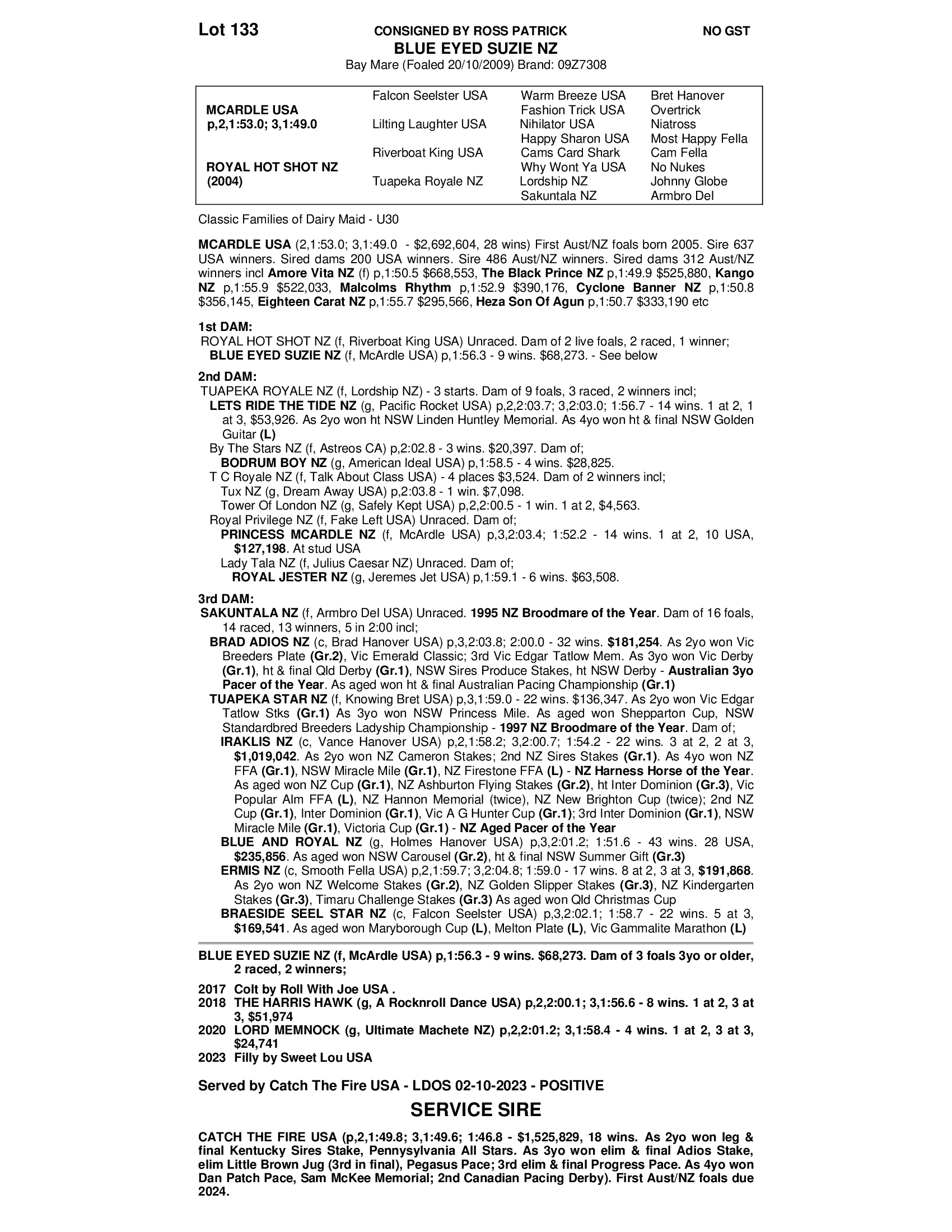 PROGENY - THE HARRIS HAWK (2017) $51,914 PRIZE MONEY) SIRE ROCKNROLL DANCE