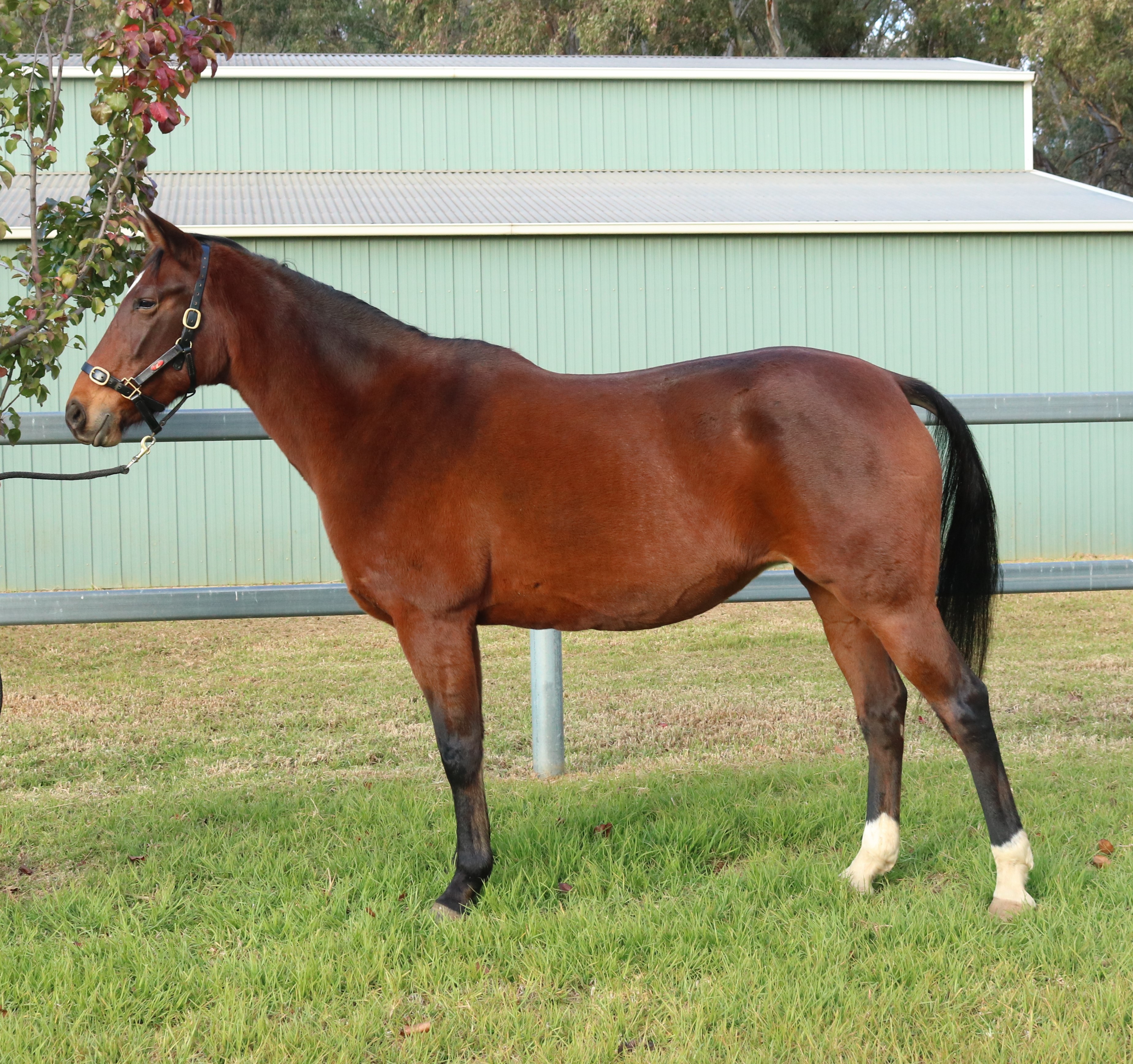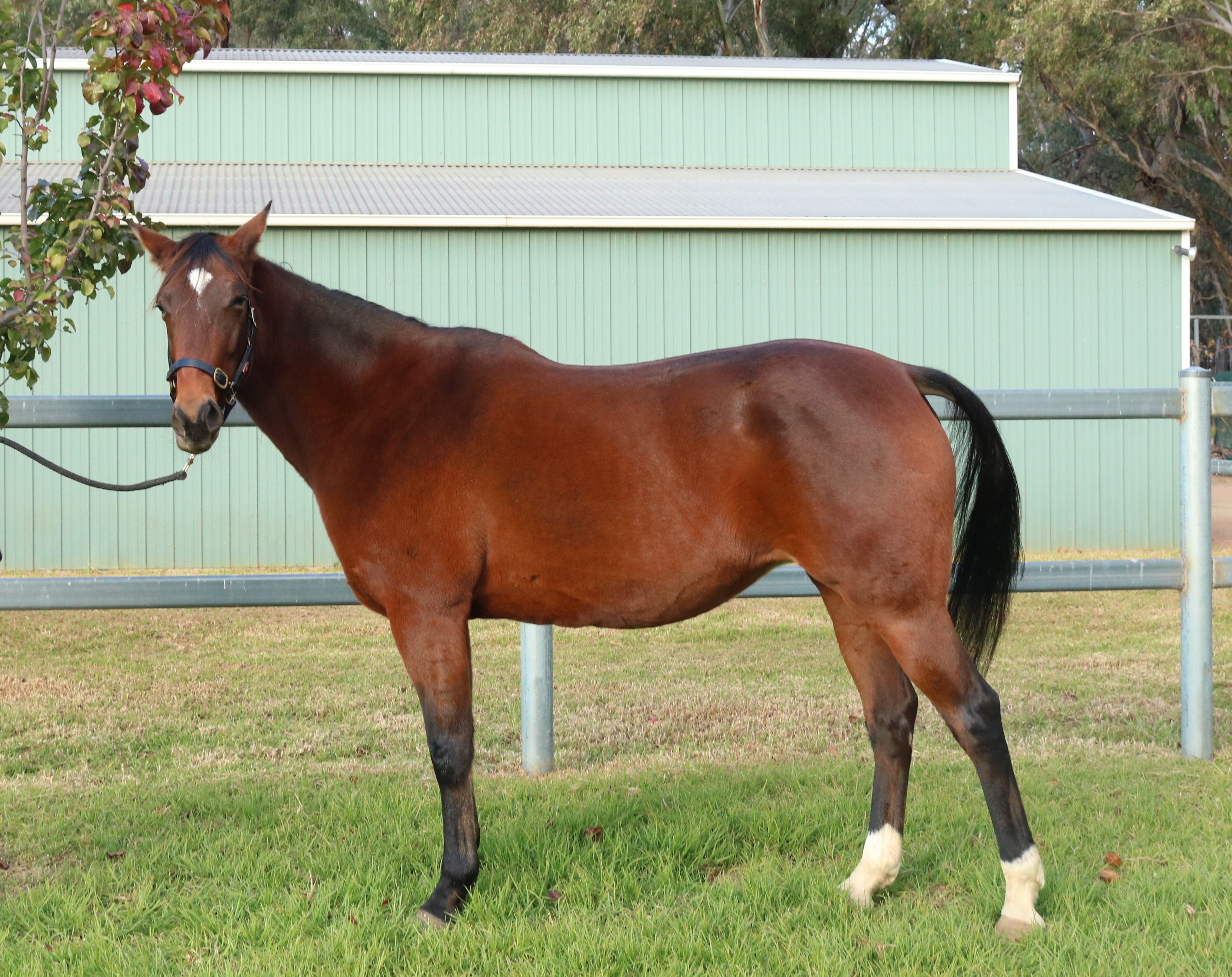 15.2 hands. This mare is the dam of only 3 foals. Her oldest is a three year old and he had his first start recently. The second is a two year old and has promise as shown in the Bathurst Gold Crown Carnival in March. We have found that she throws foals according to the size of the sire. Her first two by Bettors Delight are on the small side but her last foal by KIng Of Swing is a beautiful tall colt and a cracking type. All three foals have been very correct. Mindy is good mare to handle and breed and does a good job with her foals.