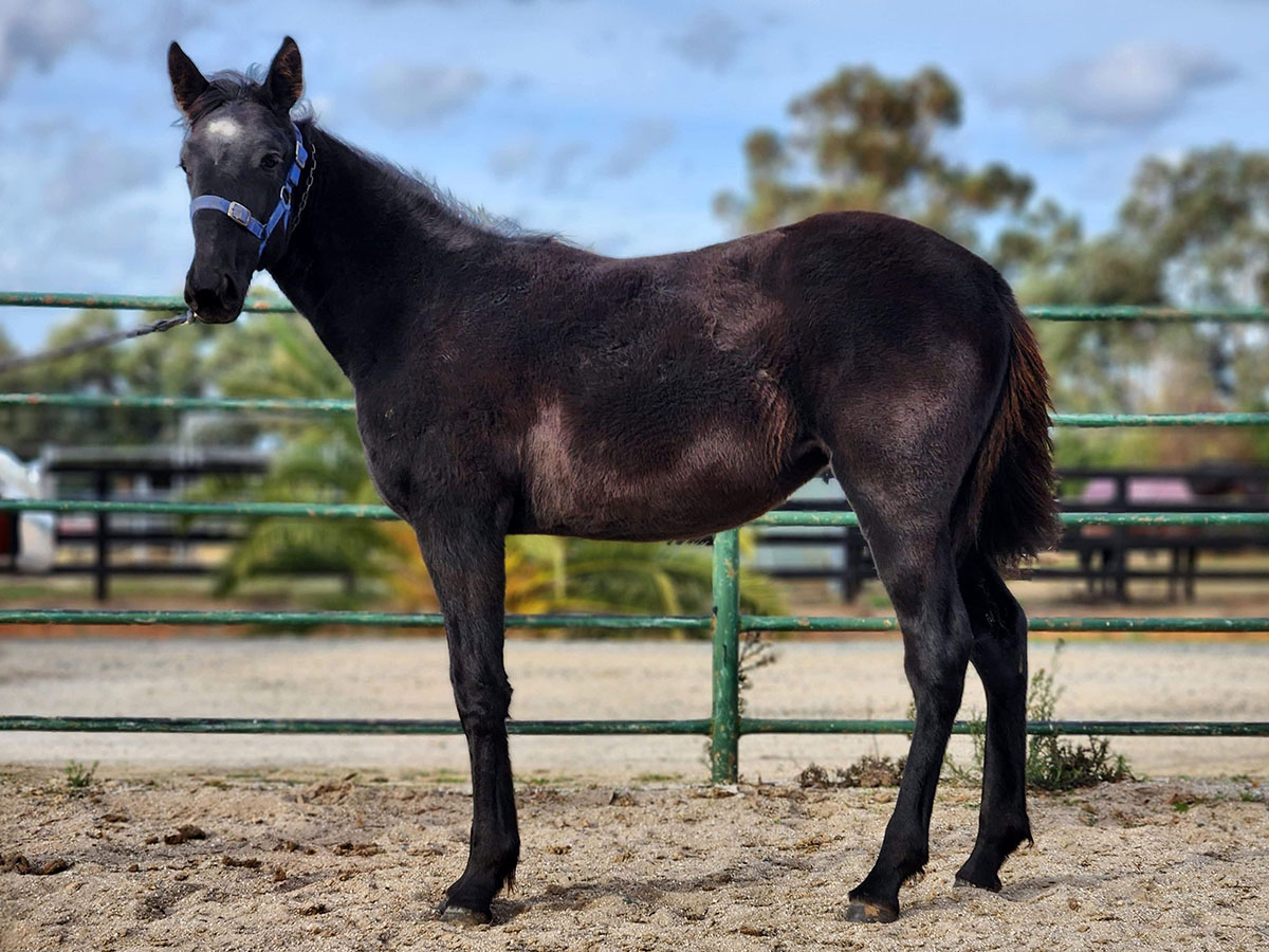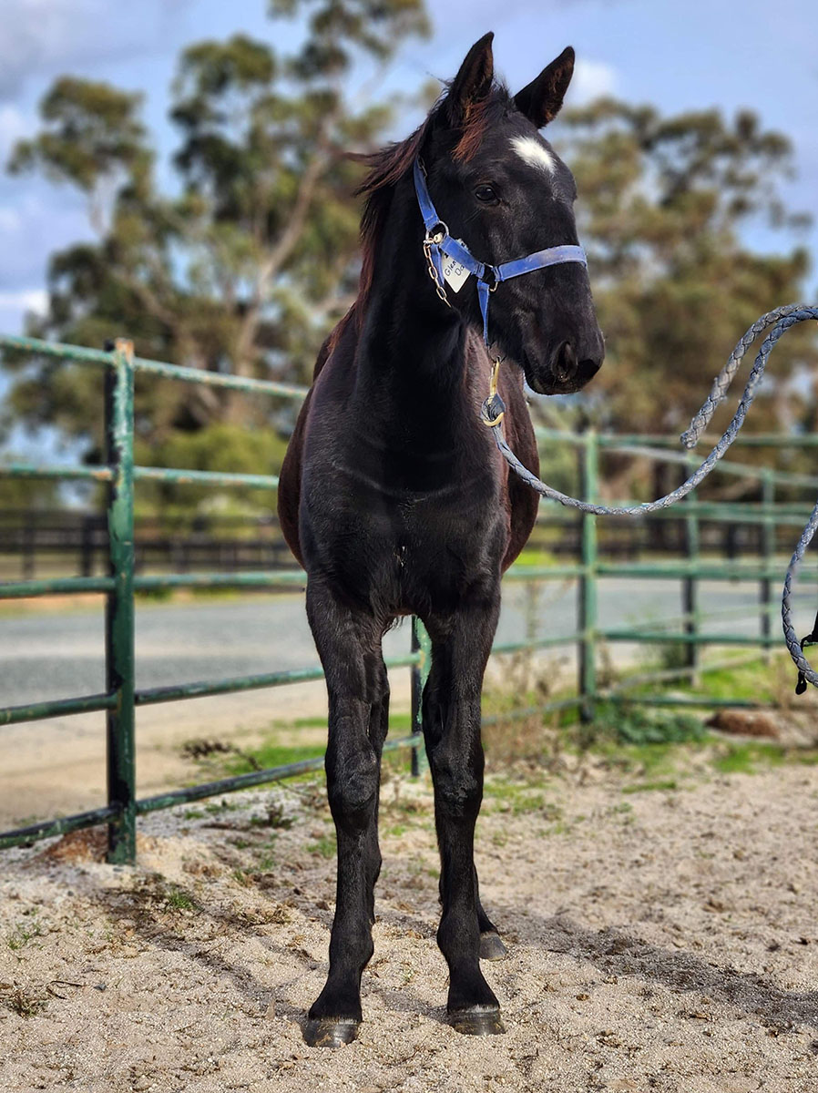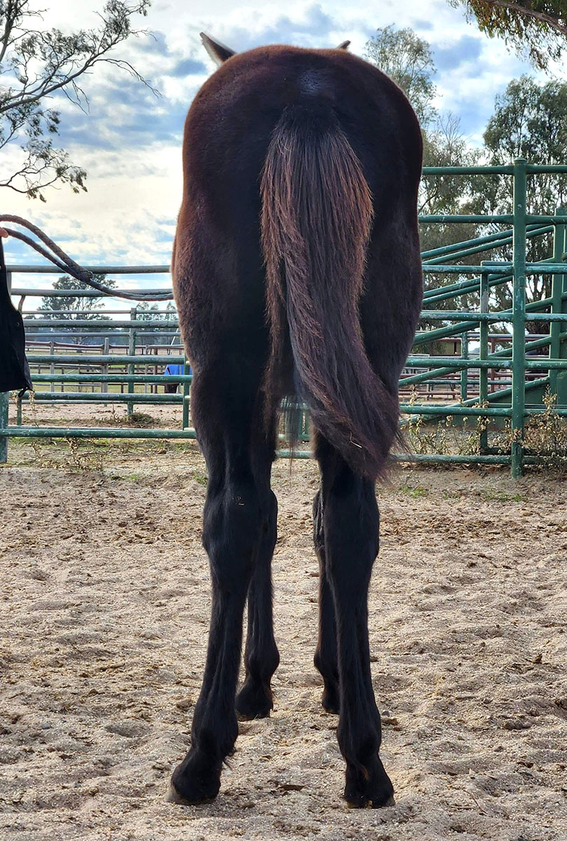 Please note this filly toes out and has has had transphyseal screws placed in both knees to improve this. These screws have been removed and this surgery is not expected to impact on the racing career of this filly.