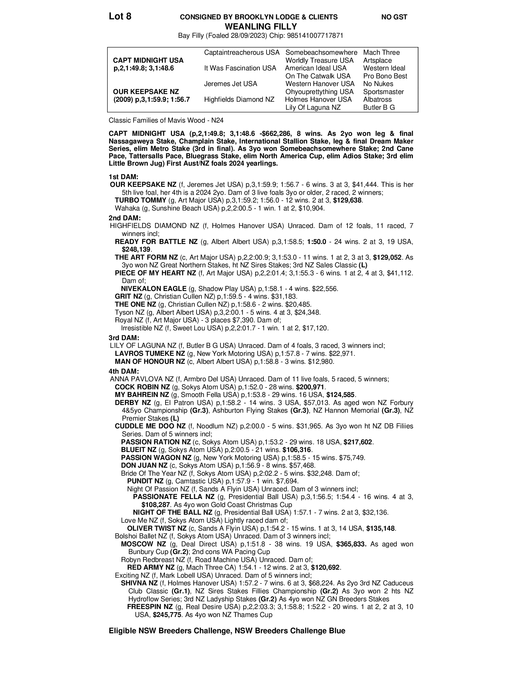 OUR KEEPSAKE NZ 2023 FILLY
