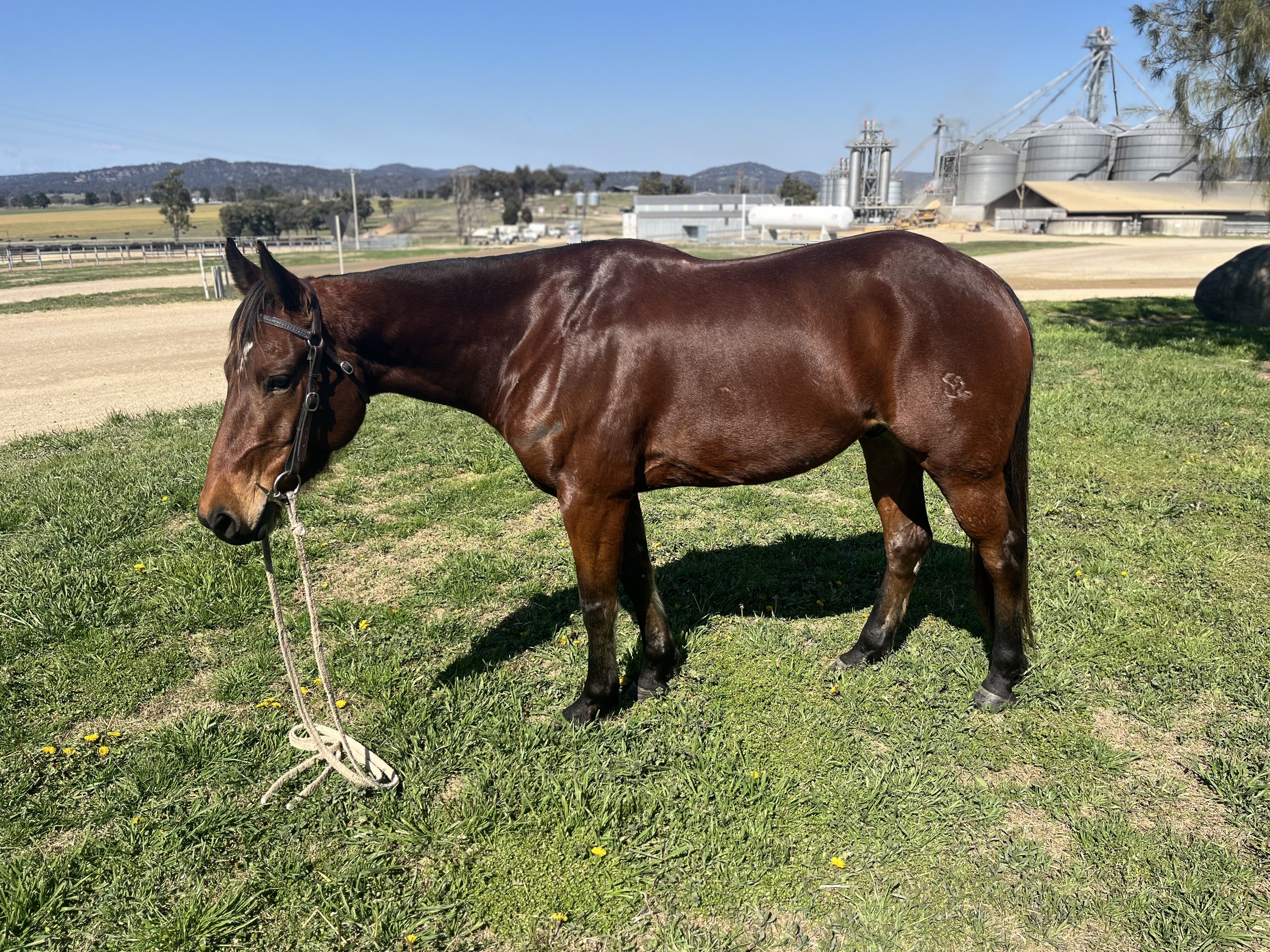 Ready to chuck on the truck and have some fun on in any discipline. Has been drafted for a couple of years and made the Novice final at Guyra this year. Has had a load of mustering with bikes, choppers, whips etc. and is currently being used at the feedlot so has been exposed to a lot and had a lot of miles under saddle. Great work horse that will step up and handle pressure or cruise along on a loose rain all day. He will walk up to you in the paddock, walk straight on a truck or float, stand at a fence/step for mounting so is quiet and well handled but isn’t a kids horse.