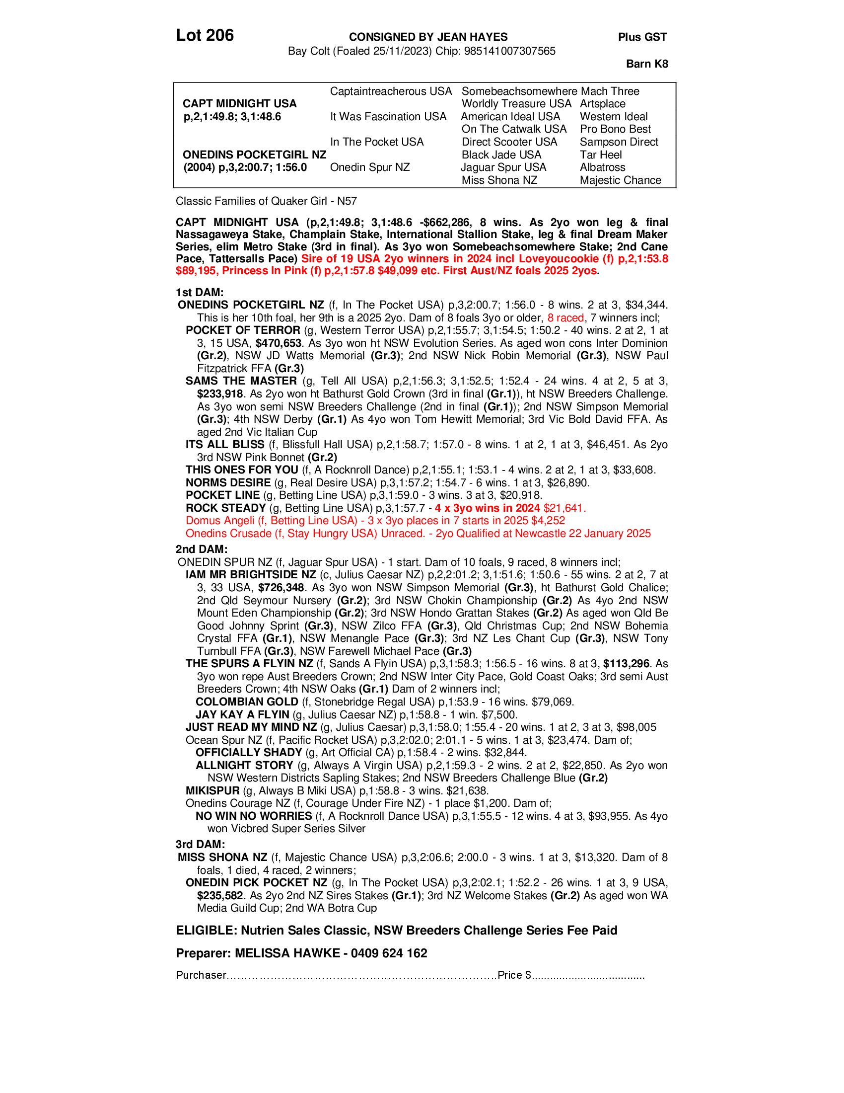 ONEDINS POCKETGIRL NZ 2023 COLT