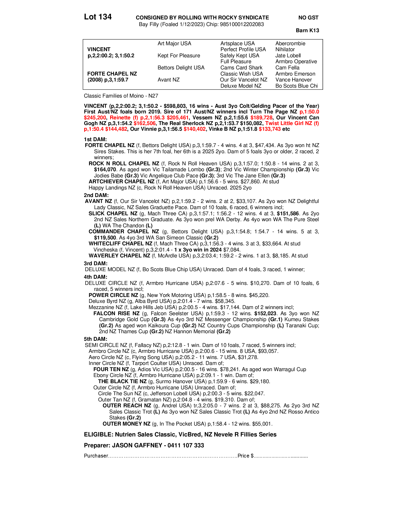 FORTE CHAPEL (NZ) 2023 FILLY
