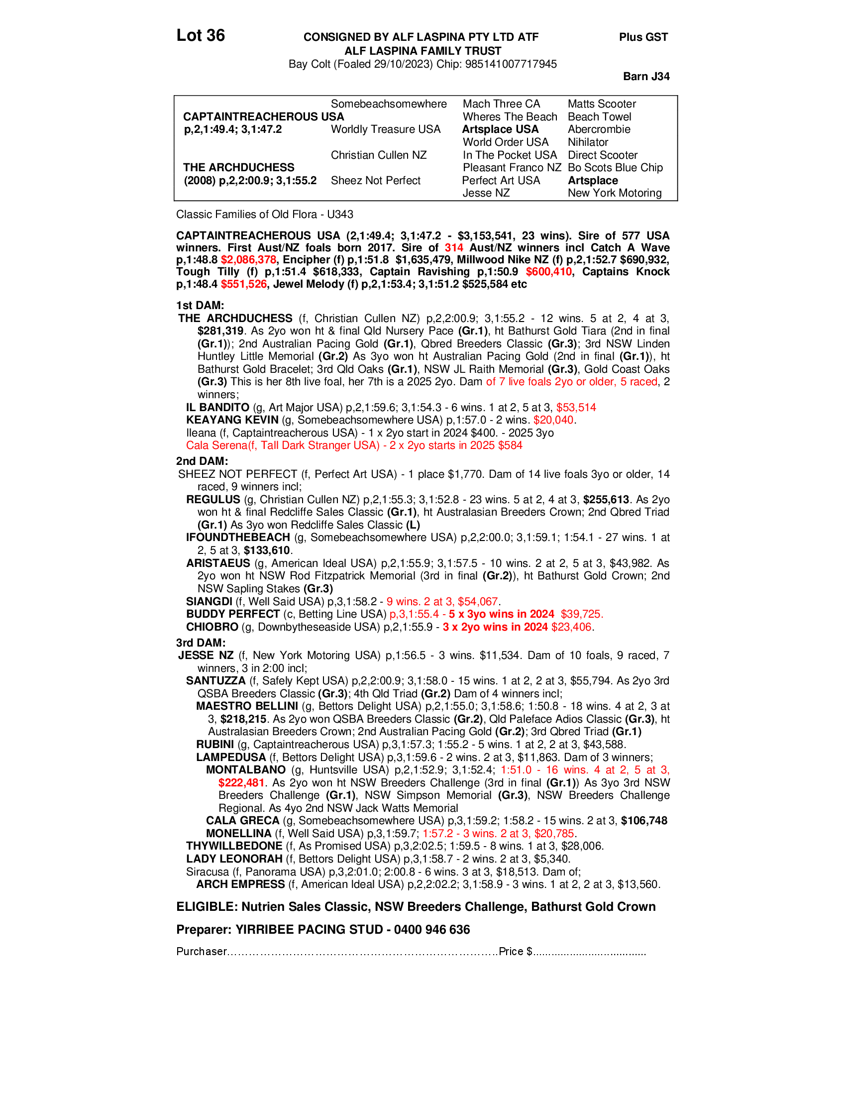 YIRRIBEE PACING STUD - DENNIS PICKER