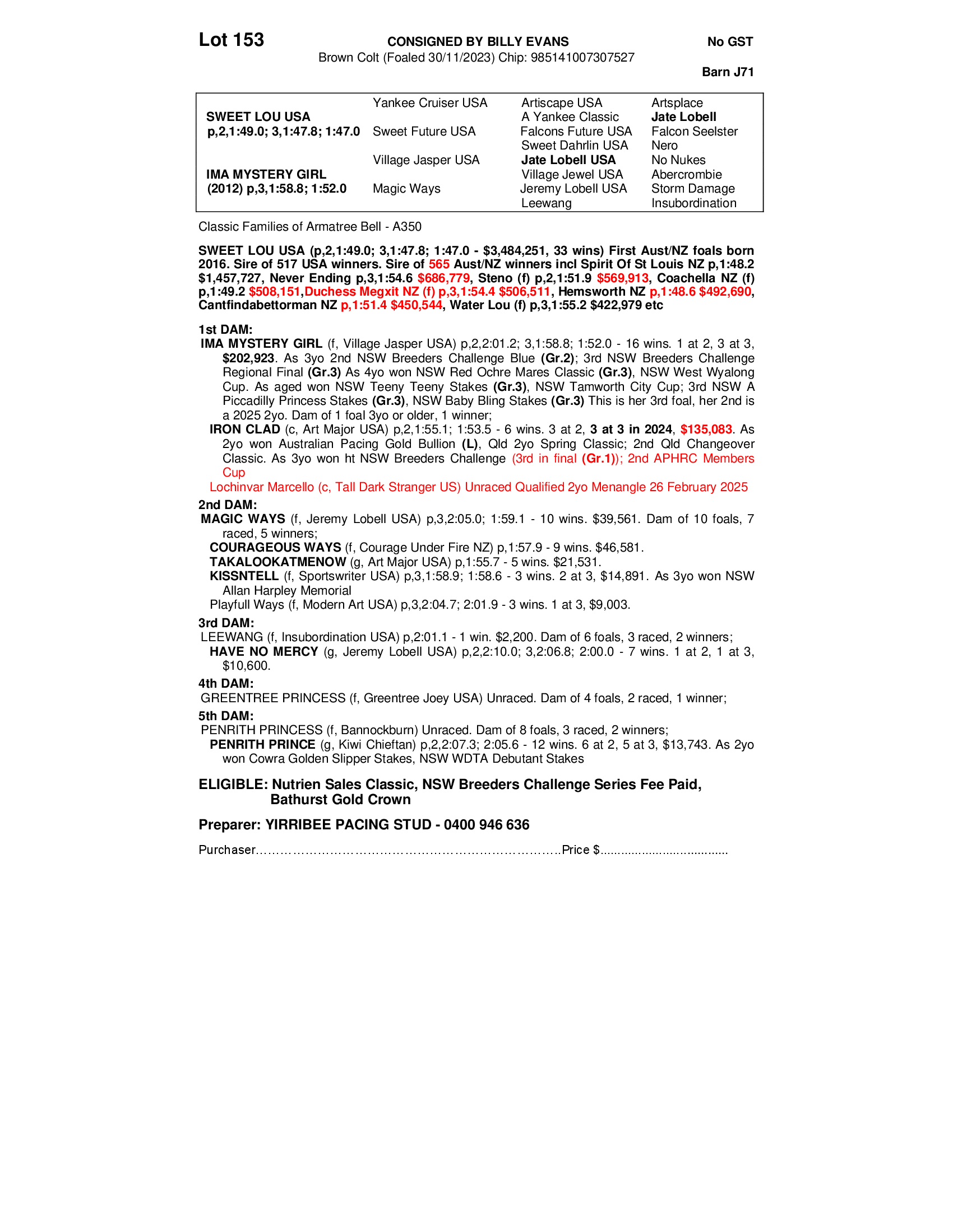 YIRRIBEE PACING STUD-DENNIS PICKER