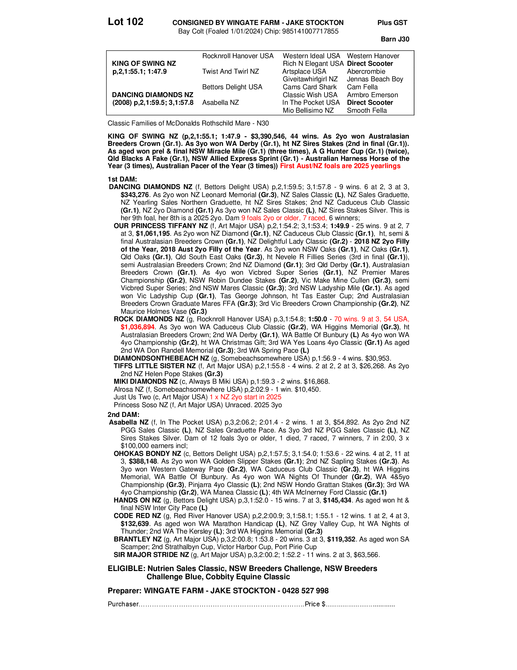 DANCING DIAMONDS NZ 2024 COLT
