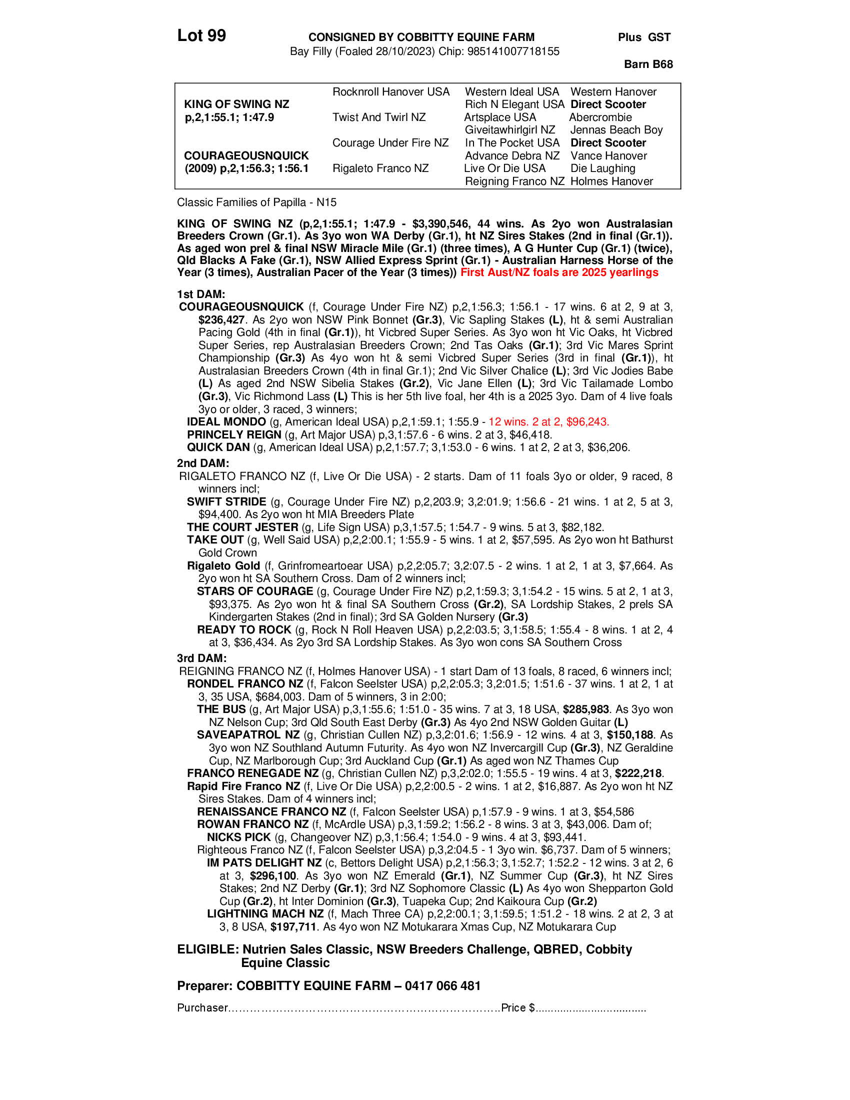 COURAGEOUSNQUICK 2023 FILLY