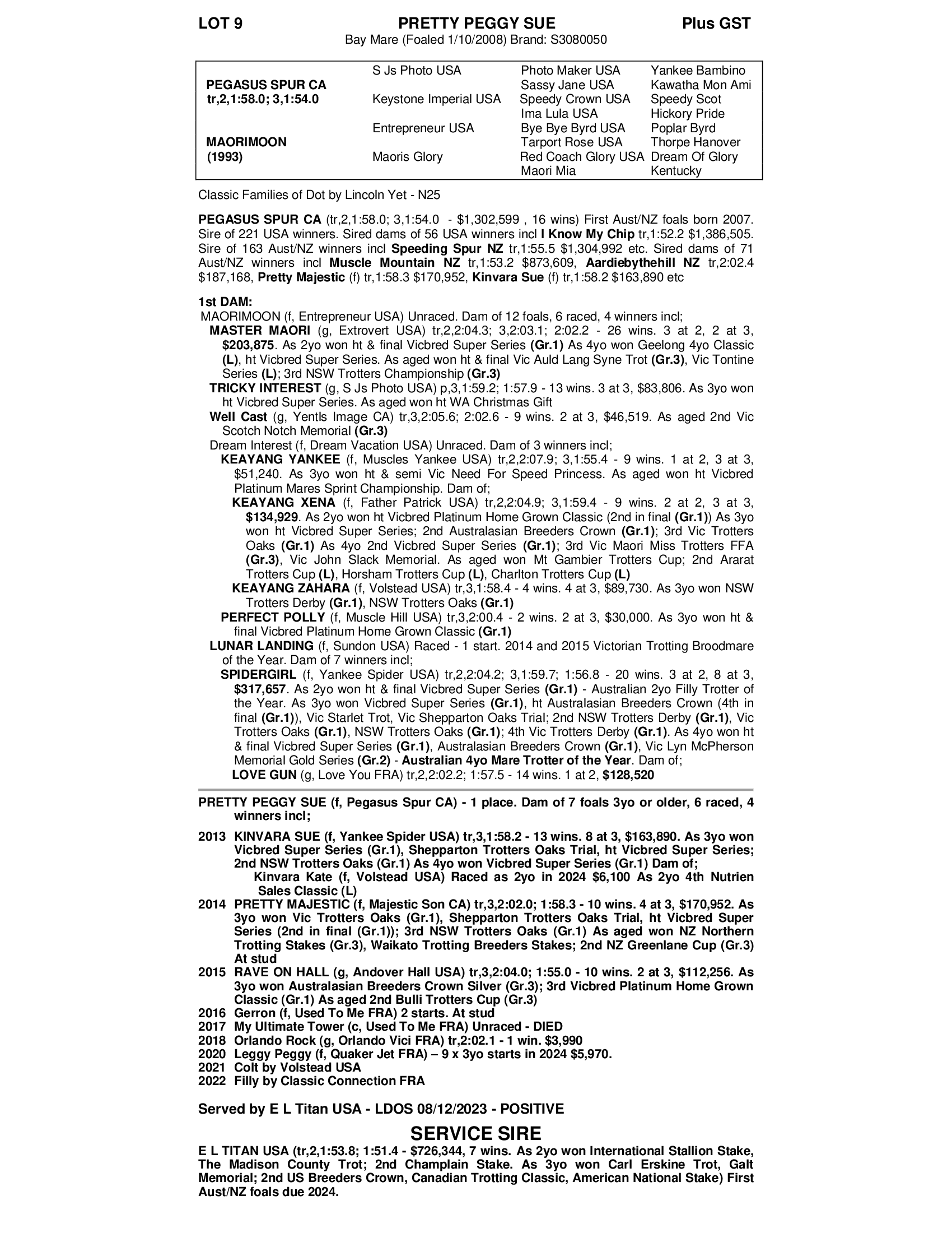 A grand producer of mutiple Group 1 winners. In foal to potentially her best stallion to date. Again Yabby Dam Farms retains a number of fillies from this family. Resultant foal will be Qbred eligible