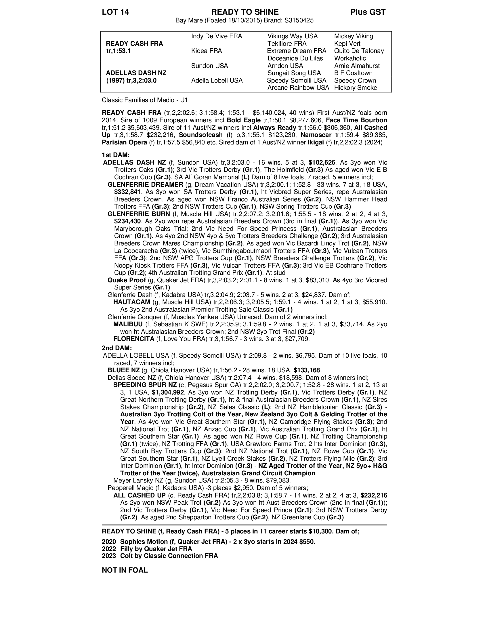 Another young Ready Cash mare (Ready Cash mares are making oustanding broodmares all over the world)Another young Ready Cash mare (Ready Cash mares are making oustanding broodmares all over the world)