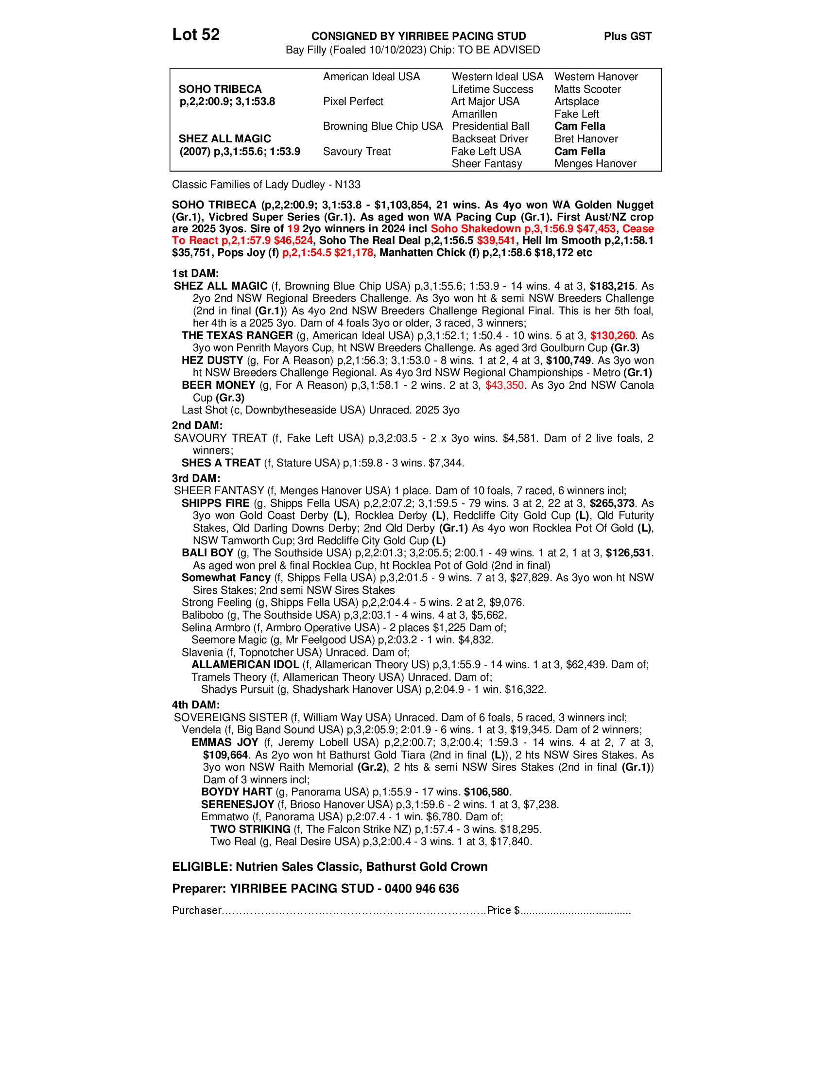 YIRRIBEE PACING STUD