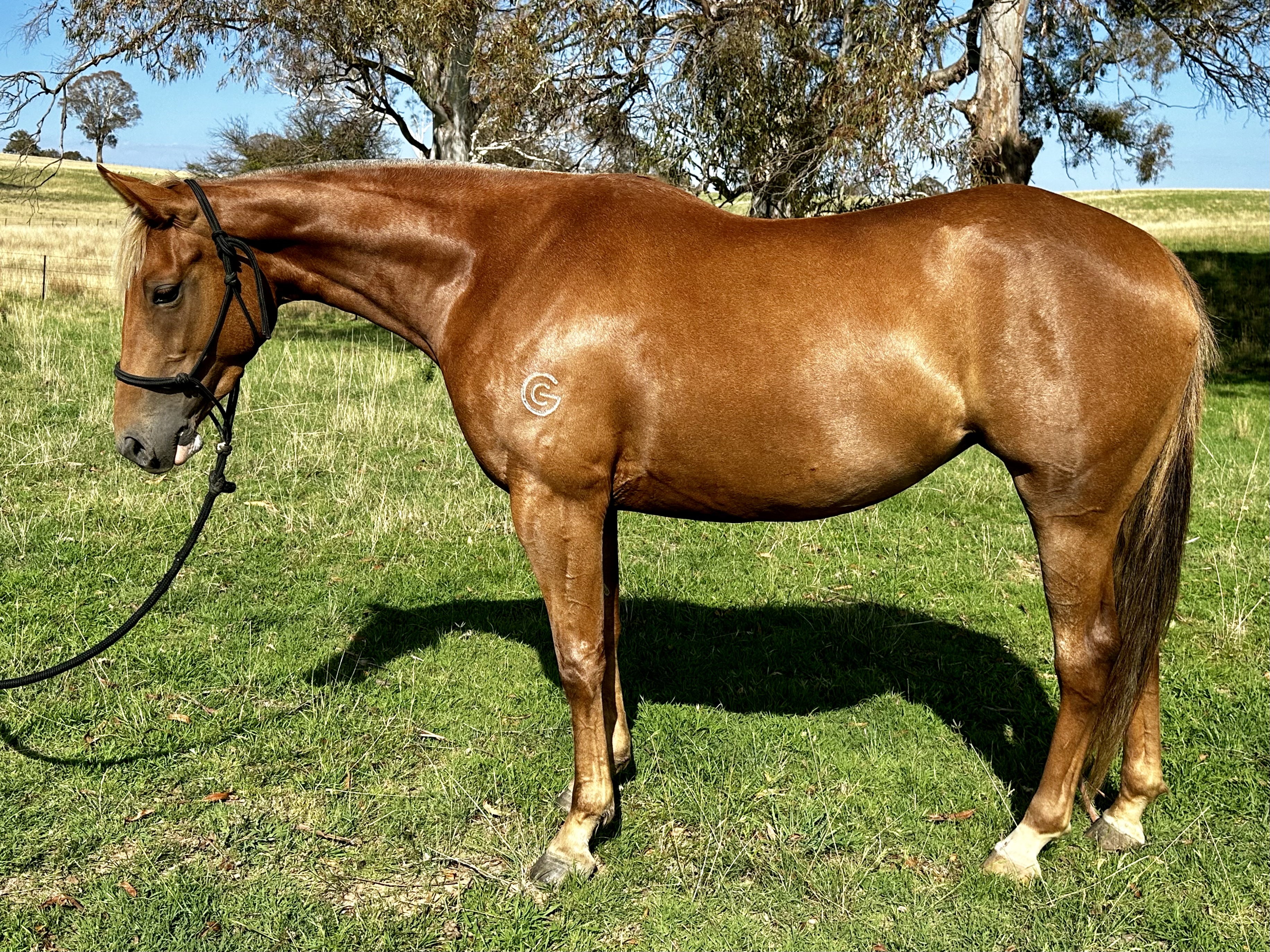 Blondie is quiet, easy and trainable. Very cool minded, sensible and ready to go on with. Had plenty of mustering, started on bag and cattle and tracking cattle nicely. Dam is successful young campdraft mare. Granddam multiple open winner.